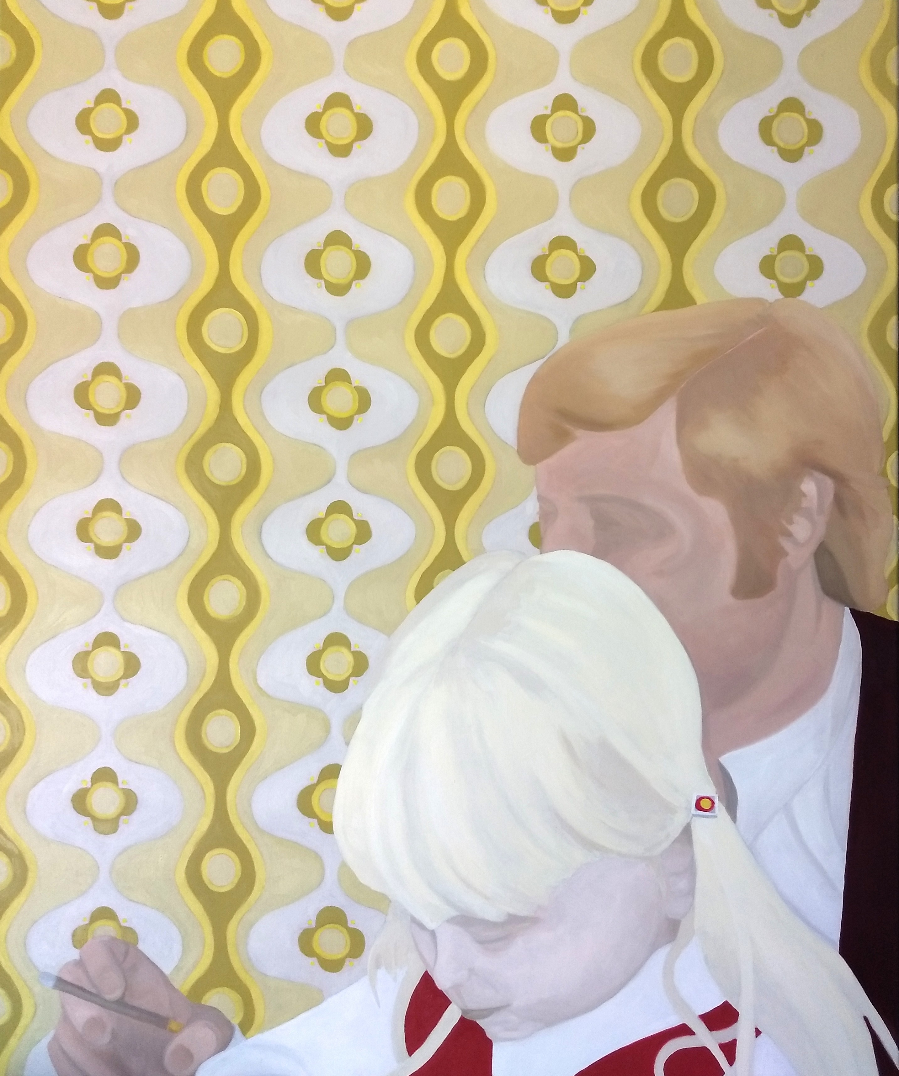 Narratives from the past, captured in found photographs, get entwined with threads from the present, revealing how the past and past generations linger in the lacunas and interstices of the now. These paintings search for a visual language that evokes and tells perpetual stories able to transcend the boundaries of the moment documented in the photograph. Like Paul Celan said “All the faces’ writing, into which whirring wordsand drilled-Mini-eternal syllables.”
