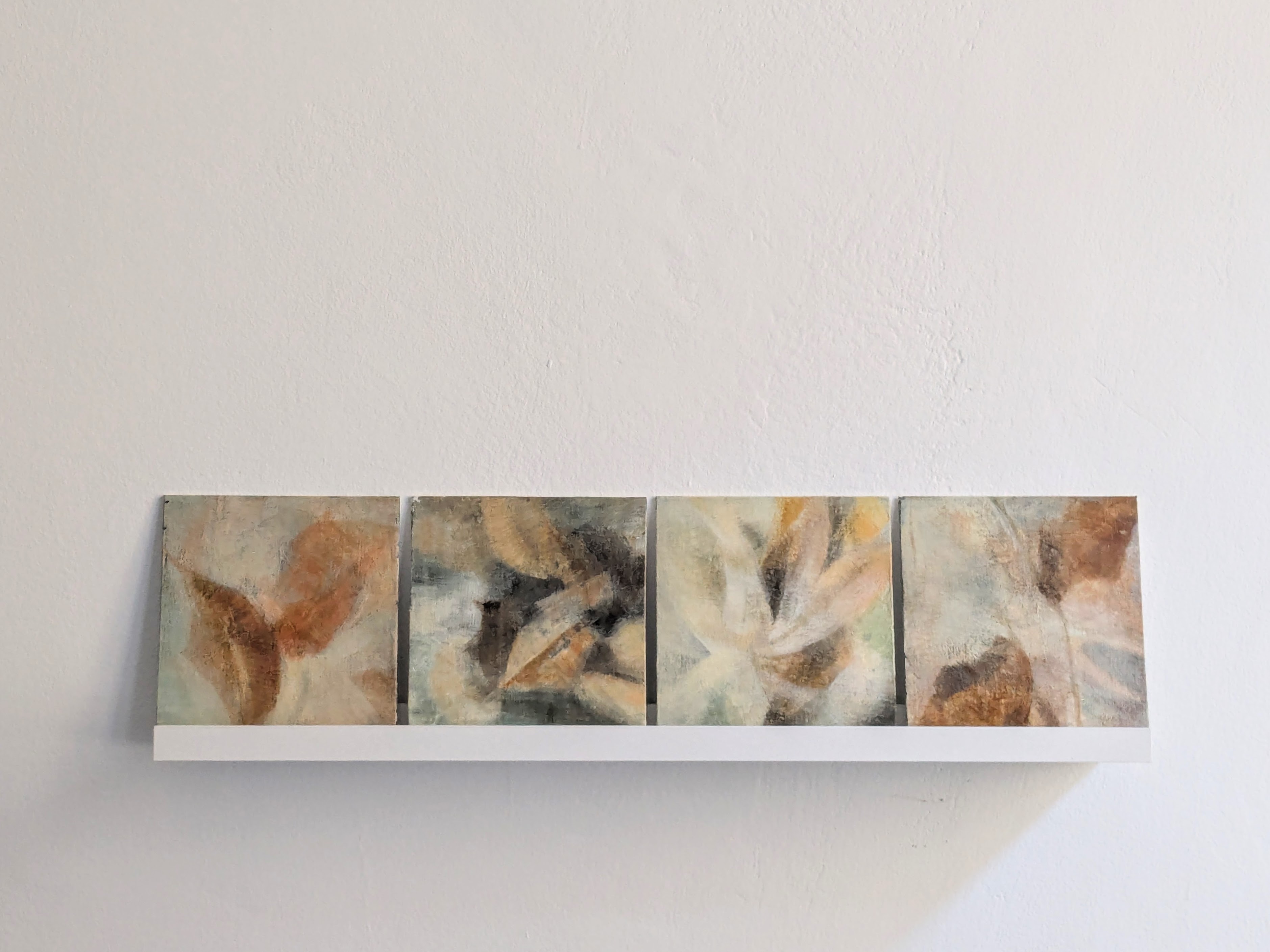 This series of small works represents a dialogue between historical practices and contemporary painting. Pears, plums, and poppy seeds gathered from the monks’ garden in Glenstall Abbey, where I was attending a residency, served as an anchor for this series of small studies to explore form and its deconstruction, and colour and how to create depth and vibrancy through layering, drawing upon the old masters’ technique of egg tempera.